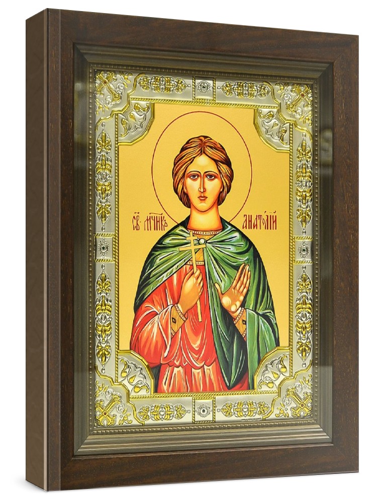 Икона анатолий никейский (24х30), серебро. Икона выполнена на доске из дуба минеральными (природными) красками с использованием сусального золота по всем канонам Православия. Изображение трижды покрыто бесцветным лаком, что гарантирует долговечность, свежесть и чистоту красок. Оклад иконы выполнен из металлической основы, покрытой листовым серебром 925 пробы и 24-каратным золотом (имеется сертификат на обратной стороне), украшен стразами. Киот со стеклом, выполнен из массива дерева. Размер иконы с киотом: 24х30 см, без киота: 18х24 см. Производство: Италия-Россия.