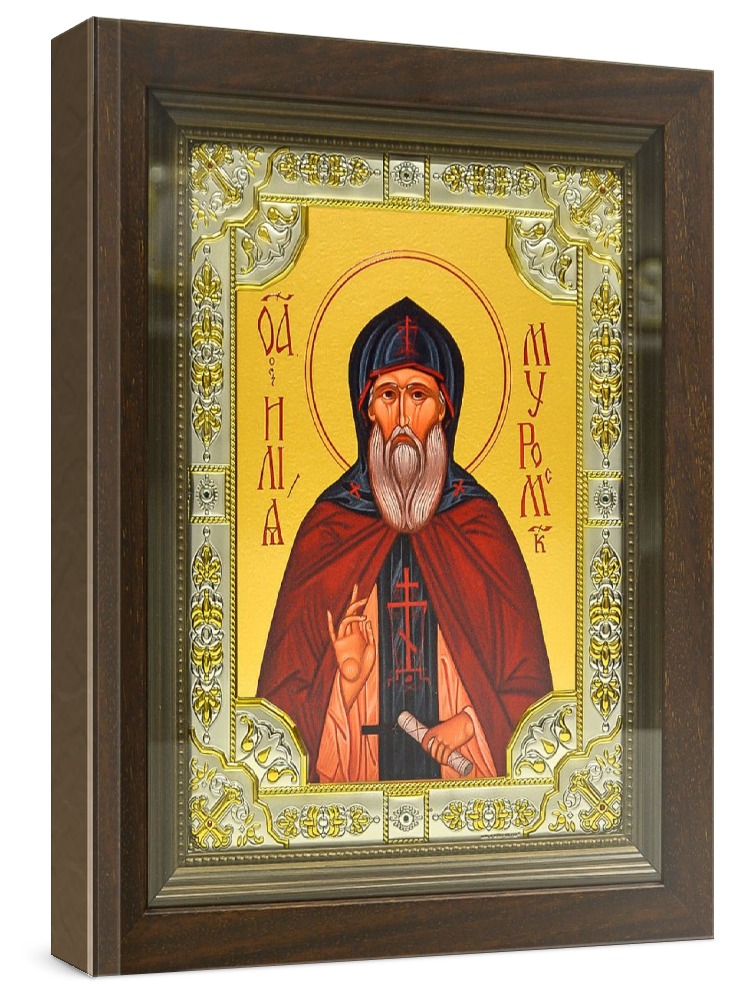 Икона илья муромец (24х30), серебро. Икона выполнена на доске из дуба минеральными (природными) красками с использованием сусального золота по всем канонам Православия. Изображение трижды покрыто бесцветным лаком, что гарантирует долговечность, свежесть и чистоту красок. Оклад иконы выполнен из металлической основы, покрытой листовым серебром 925 пробы и 24-каратным золотом (имеется сертификат на обратной стороне), украшен стразами. Киот со стеклом, выполнен из массива дерева. Размер иконы с киотом: 24х30 см, без киота: 18х24 см. Производство: Италия-Россия.