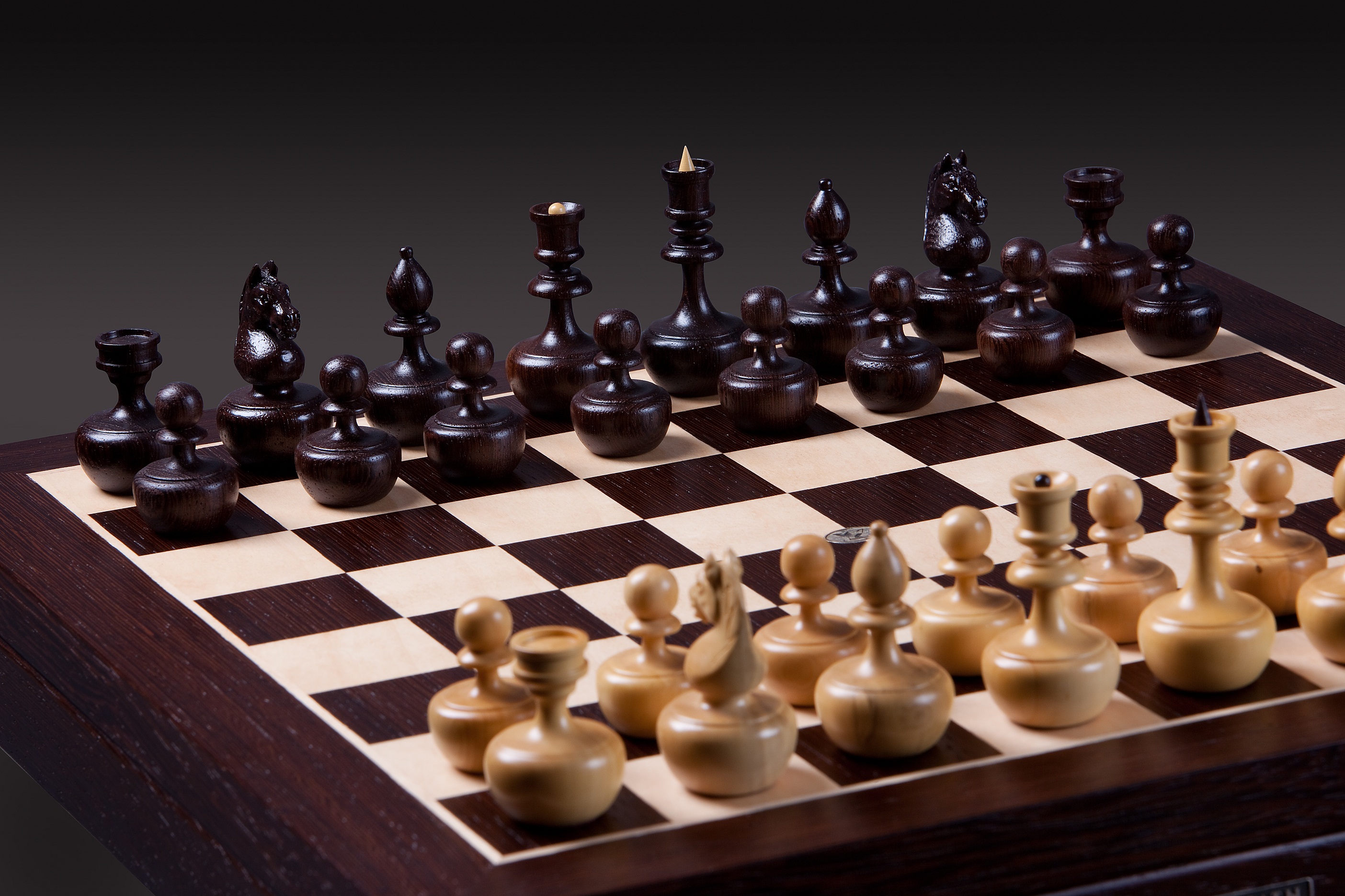 Непобедимые самшит - венге . САМШИТ - ВЕНГЕ Около полусотни разновидностей самшита оккупировали Средиземноморье, Юго-Восточную и Восточную Азию, Вест-Индию, остров Мадагаскар. Вечнозелёное, живущее до 500 лет "пальмовое дерево", как ещё называют самшит, ценится в декоративном садоводстве за красивую крону, блестящую листву и способность хорошо переносить стрижку - его причудливые силуэты издавна украшают южные парки. А вот для умельцев жёлтая, крепкая, твёрдая, как кость, древесина самшита - идеальный материал, наравне с лучшими сортами орехового и чёрного дерева. Она не имеет себе равных в эксклюзивных поделках. Размеры комплекта (мм): В х Д х Ш: 66 x 430 x 430 Клетка: 45 Высота короля / пешки: 75 / 45 Венге - диковинная порода дерева, произрастающая в джунглях Камбоджи, Бирмы и Западной Африки вплоть до Заира, сегодня на гребне моды. Очень красивая, очень стильная, очень дорогая древесина венге обладает небывалым цветовым спектром - от золотистого до тёмно-коричневого с чёрными прожилками. К тому же она чемпион по плотности: достаточно сказать, что изделия из венге тонут в воде! Это свойство древесины имеет свои плюсы и минусы: с одной стороны, минеральные и маслянистые вещества, содержащиеся в венге, затрудняют резьбу, с другой - делают работу мастера практически вечной.