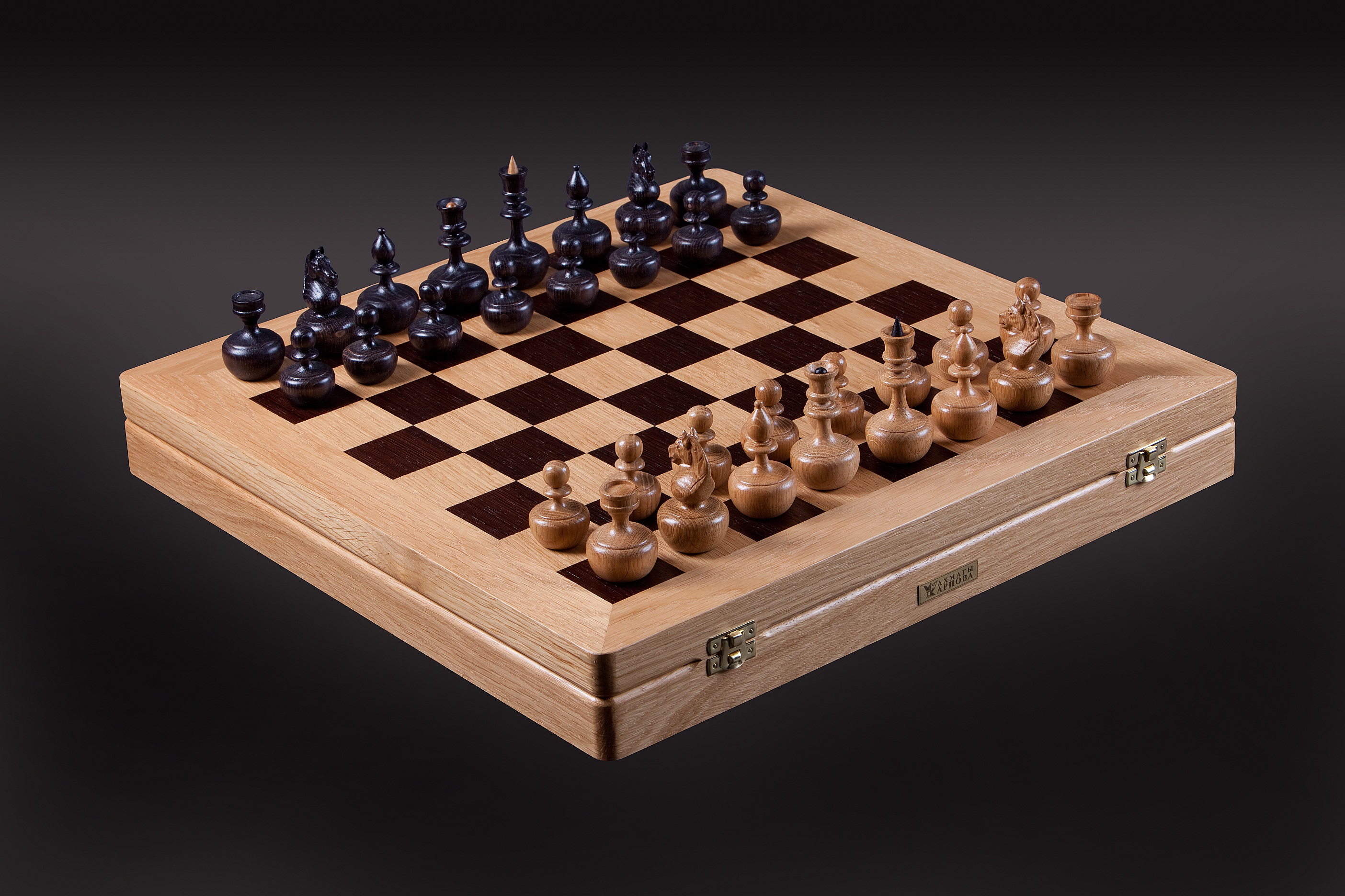 Непобедимые светлый-морёный дуб. СВЕТЛЫЙ ДУБ - МОРЕНЫЙ ДУБ Известно около 450 разновидностей дуба, произрастающих преимущественно в Северном полушарии - Европе, Азии и Северной Америке. Для наших широт это одна из наиболее традиционных пород. Пастельная гамма от светло-коричневого до желтовато-коричневого, красивая текстура, прочность, долговечность (практически не подвержен гниению) - те качества, которые обеспечивают дубу, как материалу первое место в табели о рангах. Потребители ценят еще одно его свойство: дуб красиво "дряхлеет", приобретая оттенок благородной старины. Размеры комплекта (мм): В х Д х Ш: 66 x 430 x 430 Клетка: 45 Высота короля / пешки: 75 / 45 Морёный дуб — драгоценный древесный материал с серебристо-седыми благородными прожилками, впитавший в себя историю. На протяжении веков и тысячелетий затонувшие дубовые стволы находились на дне водоемов, где без доступа воздуха, в процессе морения постепенно приобрели прочность, не уступающую камню. Сама природа, подарив мореному дубу, долговечность и неповторимую цветовую гамму, обусловила этим его уникальные свойства. Нельзя найти более красивой текстуры древесины. Именно поэтому знаковым отличием изделий из мореного дуба является то, что при их изготовлении не используются ни красители, ни лаки. Цвет древесины говорит сам за себя: нежные палевые оттенки свидетельствуют о возрасте морения в 300-400 лет, а черный цвет приобретается более чем за 1000 лет морения. В исторических описаниях можно встретить наименование мореного дуба как «черное дерево» и «железное дерево». Такие названия обусловлены свойствами древесины, но речь идет именно о дубе, выдержанном под водой. Характерно, что на Руси не существовало понятия «краснодеревщик» — мастера, работающие с элитной древесиной, назывались именно «чернодеревщиками». И сегодня, следующие вековым традициям мастера, уважают природную неповторимость каждого кусочка материала, с которым работают, выявляя и преподнося его лучшие качества. Поэтому мореный дуб сегодня используется не только и не столько как отделочный материал, но и как источник вдохновения для создания подлинных произведений искусства.