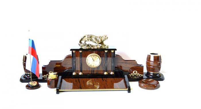 Настольный набор из обсидиана с тигром