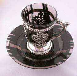Кофейная пара обсидиан, серебро
