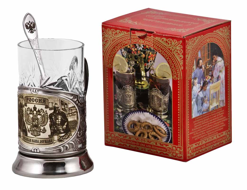 Набор для чая "россия" (3 пр.) карт.коробка, хруст.стакан, гра