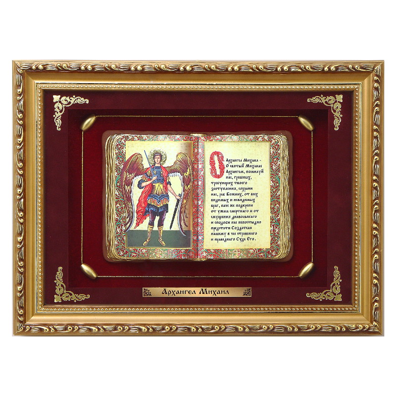 Православное панно архангел михаил сред. багет. Состав: дерево (бук), бумага, бархат, золотое покрытие Статус: Под заказ Размер: 36x27x5 см Размер с упаковкой: Х Х Вес (NETTO): 1.61