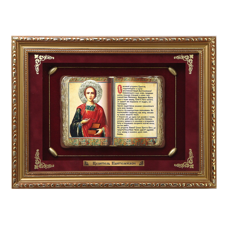Православное панно пантелеймон целитель сред. багет. Состав: дерево (бук), бумага, бархат, золотое покрытие Статус: Под заказ Размер: 36x27x5 см Размер с упаковкой: Х Х Вес (NETTO): 1.61