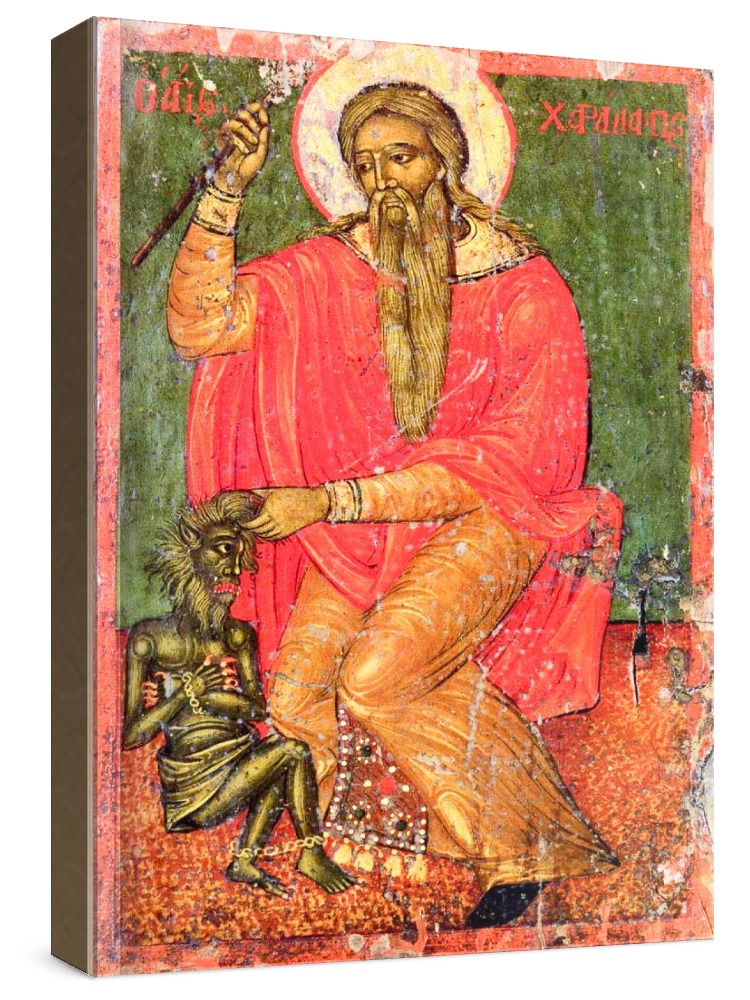 Икона харлампий (копия иконы 18 века). Икона на заказ. Срок изготовления - 1-2 недели. Изображение нанесено на основу из натурального хвойного дерева методом прямой печати. При работе соблюдены размерные пропорции и цветовая гамма оригинальной старинной иконы. Деревянная основа подвержена искусственному старению методом браширования, что делает икону более ценной и максимально похожей на многовековую семейную реликвию. Цена зависит от размера иконы (высота может незначительно отличаться от указанной величины в связи с точным соблюдением пропорций оригинала): 10x13*- 1500 руб. 30x40 - 5000 руб. 60x80 - 15000 руб. 15x18 - 2250 руб. 40x60 - 8000 руб. 80x120 - 20000 руб. 20x25 - 3000 руб. * - изготовление иконы 10х13 см возможно только при заказе от 3 шт.