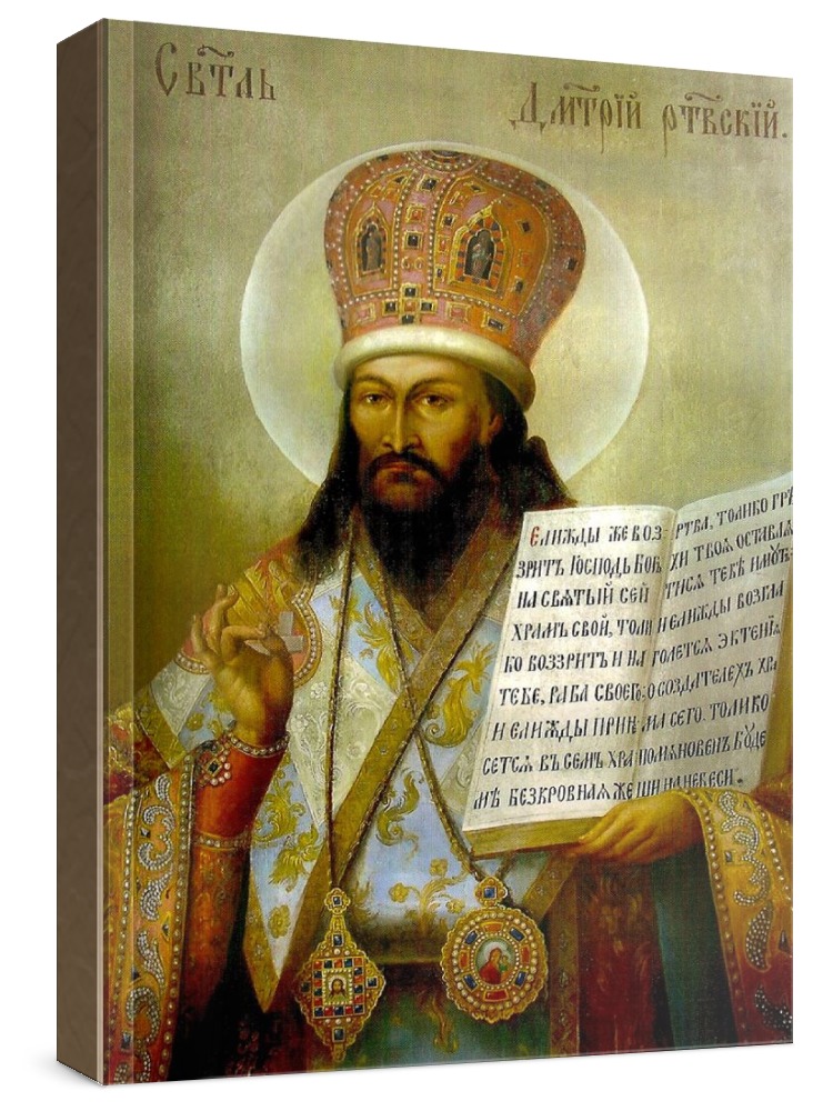 Икона димитрий ростовский. Икона на заказ. Срок изготовления - 1-2 недели. Изображение нанесено на основу из натурального хвойного дерева методом прямой печати (не полиграфия). Деревянная основа иконы подвержена искусственному старению. Лик покрыт специальным лаком, что защищает икону от воздействий окружающей среды и обеспечивает хранение иконы в первозданном виде в течение нескольких десятилетий. Цена зависит от размера иконы (высота может незначительно отличаться от указанной величины в связи с точным соблюдением пропорций оригинала): 10x13*- 1500 руб. 30x40 - 5000 руб. 60x80 - 15000 руб. 15x18 - 2250 руб. 40x60 - 8000 руб. 80x120 - 20000 руб. 20x25 - 3000 руб. * - изготовление иконы 10х13 см возможно только при заказе от 3 шт.