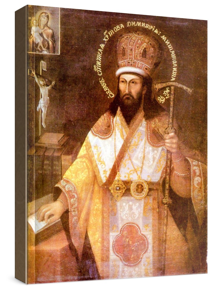 Икона димитрий ростовский (копия иконы 18 века). Икона на заказ. Срок изготовления - 1-2 недели. Изображение нанесено на основу из натурального хвойного дерева методом прямой печати. При работе соблюдены размерные пропорции и цветовая гамма оригинальной старинной иконы. Деревянная основа подвержена искусственному старению методом браширования, что делает икону более ценной и максимально похожей на многовековую семейную реликвию. Цена зависит от размера иконы (высота может незначительно отличаться от указанной величины в связи с точным соблюдением пропорций оригинала): 10x13*- 1500 руб. 30x40 - 5000 руб. 60x80 - 15000 руб. 15x18 - 2250 руб. 40x60 - 8000 руб. 80x120 - 20000 руб. 20x25 - 3000 руб. * - изготовление иконы 10х13 см возможно только при заказе от 3 шт.