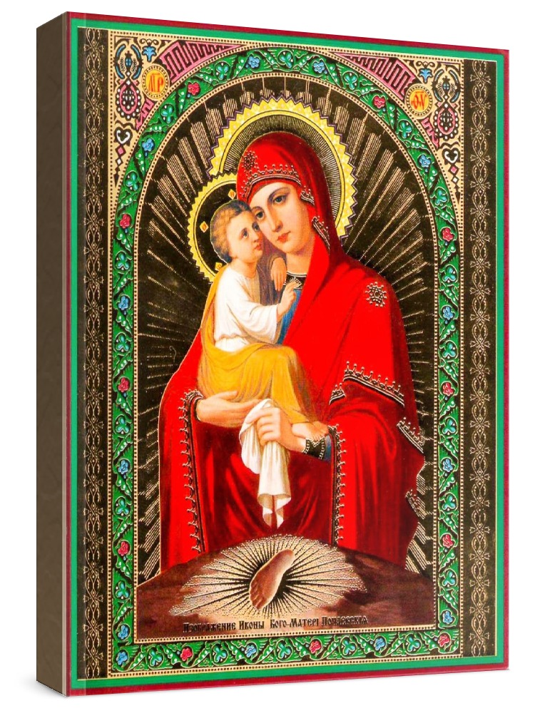 Почаевская икона божией матери. Икона на заказ. Срок изготовления - 1-2 недели. Изображение нанесено на основу из натурального хвойного дерева методом прямой печати (не полиграфия). Деревянная основа иконы подвержена искусственному старению. Лик покрыт специальным лаком, что защищает икону от воздействий окружающей среды и обеспечивает хранение иконы в первозданном виде в течение нескольких десятилетий. Цена зависит от размера иконы (высота может незначительно отличаться от указанной величины в связи с точным соблюдением пропорций оригинала): 10x13*- 1500 руб. 30x40 - 5000 руб. 60x80 - 15000 руб. 15x18 - 2250 руб. 40x60 - 8000 руб. 80x120 - 20000 руб. 20x25 - 3000 руб. * - изготовление иконы 10х13 см возможно только при заказе от 3 шт.