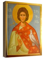 Икона трифон апамейский. Икона на заказ. Срок изготовления - 1-2 недели. Изображение нанесено на основу из натурального хвойного дерева методом прямой печати (не полиграфия). Деревянная основа иконы подвержена искусственному старению. Лик покрыт специальным лаком, что защищает икону от воздействий окружающей среды и обеспечивает хранение иконы в первозданном виде в течение нескольких десятилетий. Цена зависит от размера иконы (высота может незначительно отличаться от указанной величины в связи с точным соблюдением пропорций оригинала): 10x13*- 1500 руб. 30x40 - 5000 руб. 60x80 - 15000 руб. 15x18 - 2250 руб. 40x60 - 8000 руб. 80x120 - 20000 руб. 20x25 - 3000 руб. * - изготовление иконы 10х13 см возможно только при заказе от 3 шт.