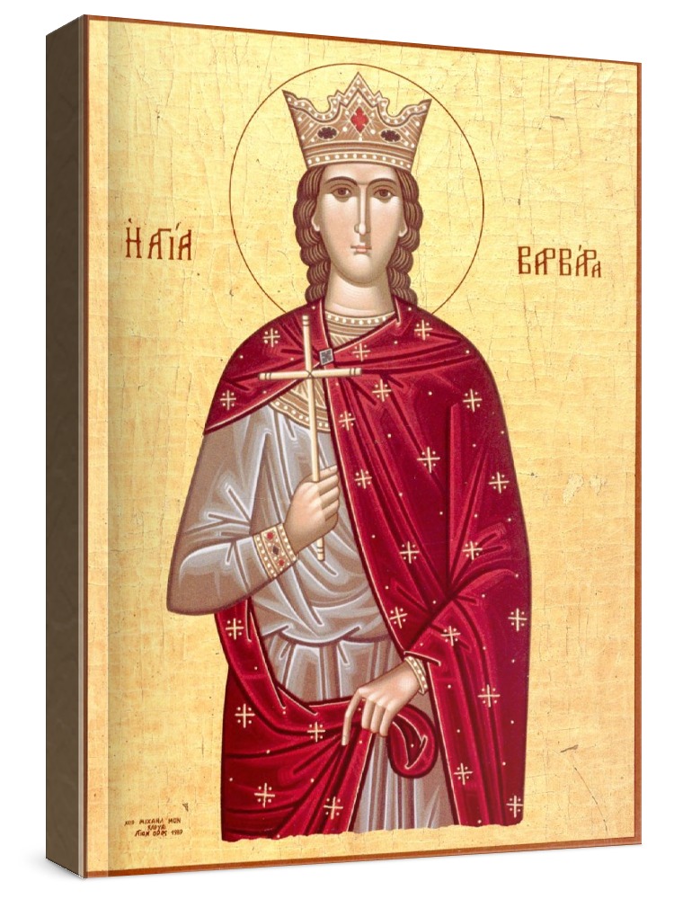 Икона варвара. Икона на заказ. Срок изготовления - 1-2 недели. Изображение нанесено на основу из натурального хвойного дерева методом прямой печати (не полиграфия). Деревянная основа иконы подвержена искусственному старению. Лик покрыт специальным лаком, что защищает икону от воздействий окружающей среды и обеспечивает хранение иконы в первозданном виде в течение нескольких десятилетий. Цена зависит от размера иконы (высота может незначительно отличаться от указанной величины в связи с точным соблюдением пропорций оригинала): 10x13*- 1500 руб. 30x40 - 5000 руб. 60x80 - 15000 руб. 15x18 - 2250 руб. 40x60 - 8000 руб. 80x120 - 20000 руб. 20x25 - 3000 руб. * - изготовление иконы 10х13 см возможно только при заказе от 3 шт.