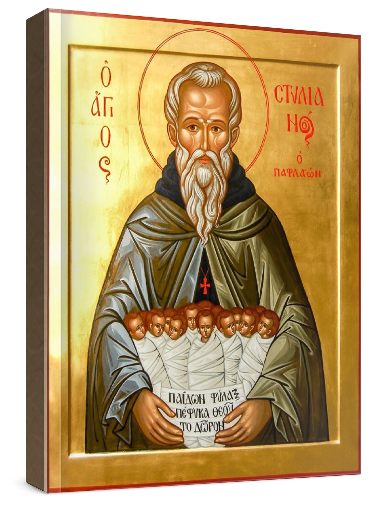Икона стилиан пафлагонский. Икона на заказ. Срок изготовления - 1-2 недели. Изображение нанесено на основу из натурального хвойного дерева методом прямой печати (не полиграфия). Деревянная основа иконы подвержена искусственному старению. Лик покрыт специальным лаком, что защищает икону от воздействий окружающей среды и обеспечивает хранение иконы в первозданном виде в течение нескольких десятилетий. Цена зависит от размера иконы (высота может незначительно отличаться от указанной величины в связи с точным соблюдением пропорций оригинала): 10x13*- 1500 руб. 30x40 - 5000 руб. 60x80 - 15000 руб. 15x18 - 2250 руб. 40x60 - 8000 руб. 80x120 - 20000 руб. 20x25 - 3000 руб. * - изготовление иконы 10х13 см возможно только при заказе от 3 шт.