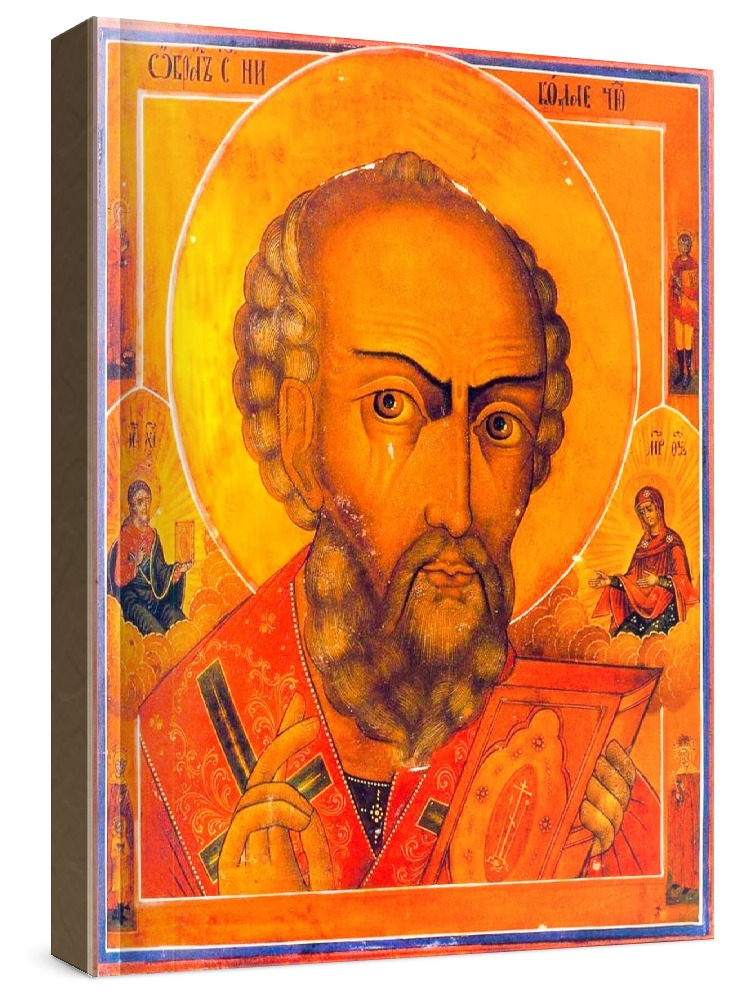 Икона николай чудотворец (копия иконы 19 века). Икона на заказ. Срок изготовления - 1-2 недели. Изображение нанесено на основу из натурального хвойного дерева методом прямой печати. При работе соблюдены размерные пропорции и цветовая гамма оригинальной старинной иконы. Деревянная основа подвержена искусственному старению методом браширования, что делает икону более ценной и максимально похожей на многовековую семейную реликвию. Цена зависит от размера иконы (высота может незначительно отличаться от указанной величины в связи с точным соблюдением пропорций оригинала): 10x13*- 1500 руб. 30x40 - 5000 руб. 60x80 - 15000 руб. 15x18 - 2250 руб. 40x60 - 8000 руб. 80x120 - 20000 руб. 20x25 - 3000 руб. * - изготовление иконы 10х13 см возможно только при заказе от 3 шт.