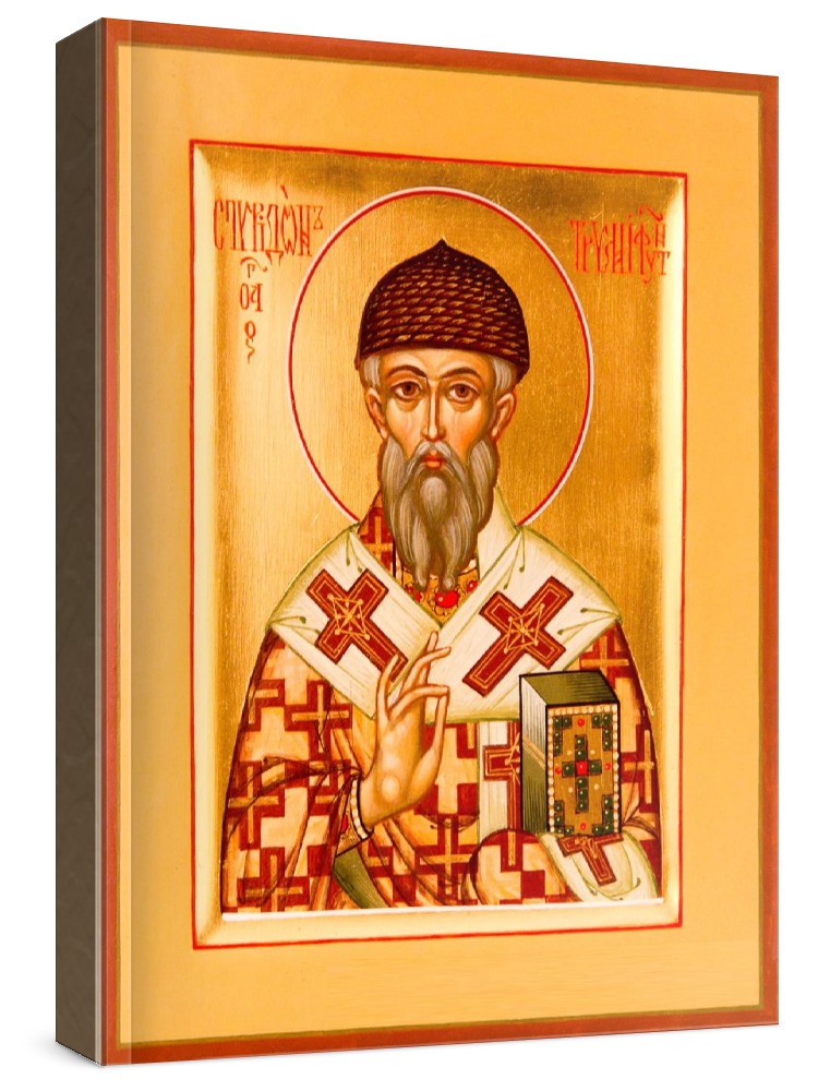Икона спиридон тримифунтский. Икона на заказ. Срок изготовления - 1-2 недели. Изображение нанесено на основу из натурального хвойного дерева методом прямой печати (не полиграфия). Деревянная основа иконы подвержена искусственному старению. Лик покрыт специальным лаком, что защищает икону от воздействий окружающей среды и обеспечивает хранение иконы в первозданном виде в течение нескольких десятилетий. Цена зависит от размера иконы (высота может незначительно отличаться от указанной величины в связи с точным соблюдением пропорций оригинала): 10x13*- 1500 руб. 30x40 - 5000 руб. 60x80 - 15000 руб. 15x18 - 2250 руб. 40x60 - 8000 руб. 80x120 - 20000 руб. 20x25 - 3000 руб. * - изготовление иконы 10х13 см возможно только при заказе от 3 шт.