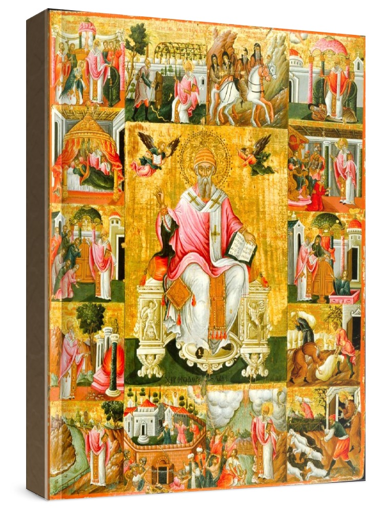 Икона спиридон тримифунтский (копия старинной иконы). Икона на заказ. Срок изготовления - 1-2 недели. Изображение нанесено на основу из натурального хвойного дерева методом прямой печати. При работе соблюдены размерные пропорции и цветовая гамма оригинальной старинной иконы. Деревянная основа подвержена искусственному старению методом браширования, что делает икону более ценной и максимально похожей на многовековую семейную реликвию. Цена зависит от размера иконы (высота может незначительно отличаться от указанной величины в связи с точным соблюдением пропорций оригинала): 10x13*- 1500 руб. 30x40 - 5000 руб. 60x80 - 15000 руб. 15x18 - 2250 руб. 40x60 - 8000 руб. 80x120 - 20000 руб. 20x25 - 3000 руб. * - изготовление иконы 10х13 см возможно только при заказе от 3 шт.