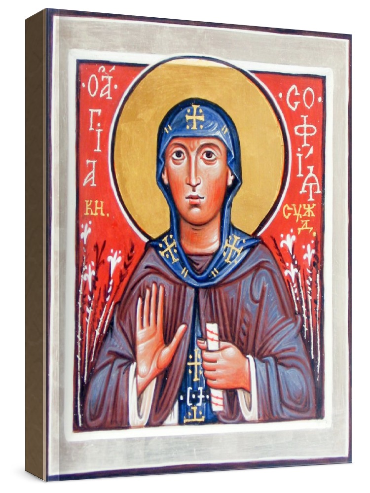Икона софия суздальская. Икона на заказ. Срок изготовления - 1-2 недели. Изображение нанесено на основу из натурального хвойного дерева методом прямой печати (не полиграфия). Деревянная основа иконы подвержена искусственному старению. Лик покрыт специальным лаком, что защищает икону от воздействий окружающей среды и обеспечивает хранение иконы в первозданном виде в течение нескольких десятилетий. Цена зависит от размера иконы (высота может незначительно отличаться от указанной величины в связи с точным соблюдением пропорций оригинала): 10x13*- 1500 руб. 30x40 - 5000 руб. 60x80 - 15000 руб. 15x18 - 2250 руб. 40x60 - 8000 руб. 80x120 - 20000 руб. 20x25 - 3000 руб. * - изготовление иконы 10х13 см возможно только при заказе от 3 шт.
