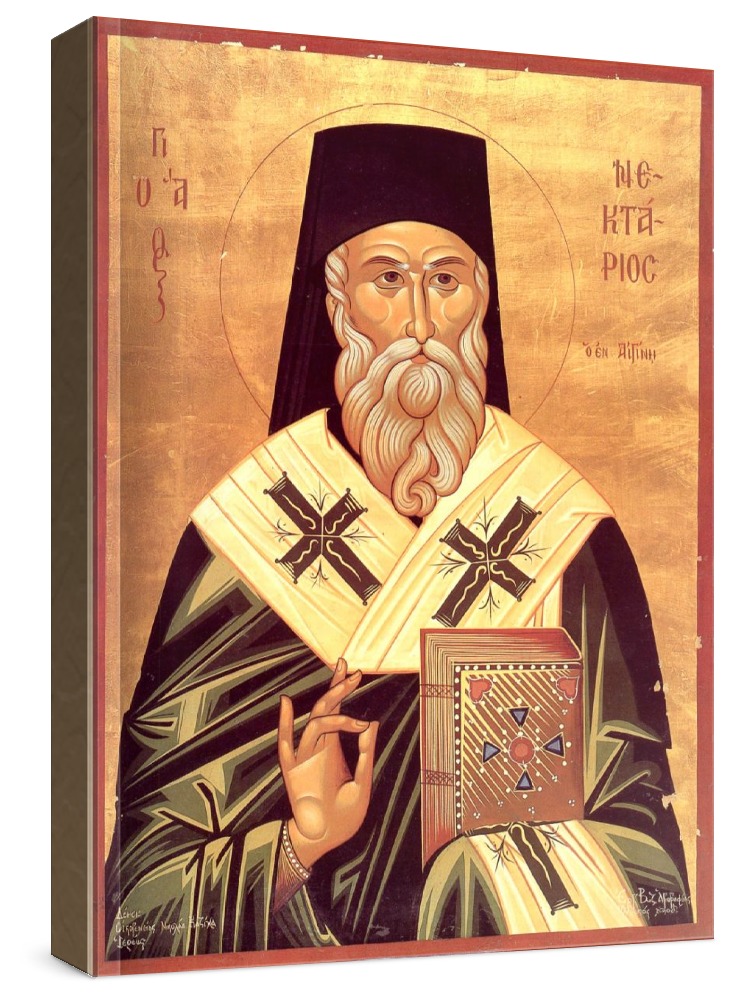 Икона нектарий эгинский. Икона на заказ. Срок изготовления - 1-2 недели. Изображение нанесено на основу из натурального хвойного дерева методом прямой печати (не полиграфия). Деревянная основа иконы подвержена искусственному старению. Лик покрыт специальным лаком, что защищает икону от воздействий окружающей среды и обеспечивает хранение иконы в первозданном виде в течение нескольких десятилетий. Цена зависит от размера иконы (высота может незначительно отличаться от указанной величины в связи с точным соблюдением пропорций оригинала): 10x13*- 1500 руб. 30x40 - 5000 руб. 60x80 - 15000 руб. 15x18 - 2250 руб. 40x60 - 8000 руб. 80x120 - 20000 руб. 20x25 - 3000 руб. * - изготовление иконы 10х13 см возможно только при заказе от 3 шт.