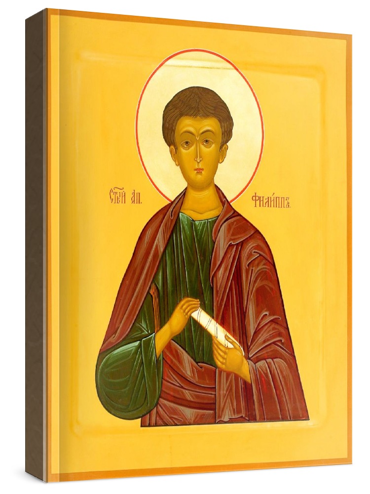 Икона филипп, апостол. Икона на заказ. Срок изготовления - 1-2 недели. Изображение нанесено на основу из натурального хвойного дерева методом прямой печати (не полиграфия). Деревянная основа иконы подвержена искусственному старению. Лик покрыт специальным лаком, что защищает икону от воздействий окружающей среды и обеспечивает хранение иконы в первозданном виде в течение нескольких десятилетий. Цена зависит от размера иконы (высота может незначительно отличаться от указанной величины в связи с точным соблюдением пропорций оригинала): 10x13*- 1500 руб. 30x40 - 5000 руб. 60x80 - 15000 руб. 15x18 - 2250 руб. 40x60 - 8000 руб. 80x120 - 20000 руб. 20x25 - 3000 руб. * - изготовление иконы 10х13 см возможно только при заказе от 3 шт.