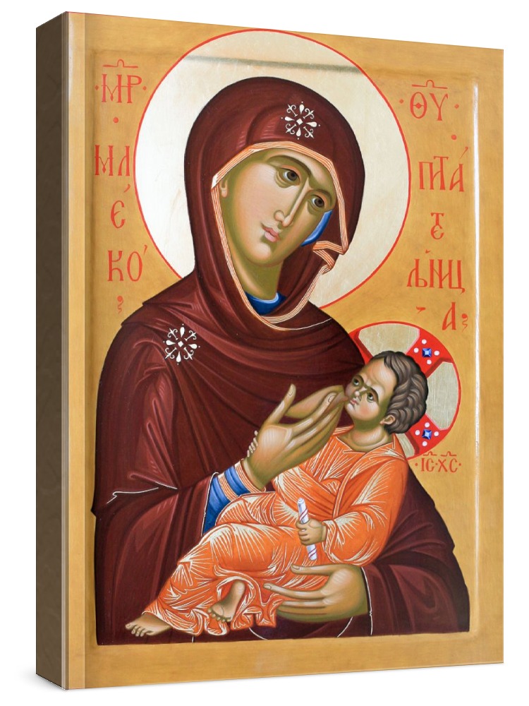 Икона млекопитательница. Икона на заказ. Срок изготовления - 1-2 недели. Изображение нанесено на основу из натурального хвойного дерева методом прямой печати (не полиграфия). Деревянная основа иконы подвержена искусственному старению. Лик покрыт специальным лаком, что защищает икону от воздействий окружающей среды и обеспечивает хранение иконы в первозданном виде в течение нескольких десятилетий. Цена зависит от размера иконы (высота может незначительно отличаться от указанной величины в связи с точным соблюдением пропорций оригинала): 10x13*- 1500 руб. 30x40 - 5000 руб. 60x80 - 15000 руб. 15x18 - 2250 руб. 40x60 - 8000 руб. 80x120 - 20000 руб. 20x25 - 3000 руб. * - изготовление иконы 10х13 см возможно только при заказе от 3 шт.