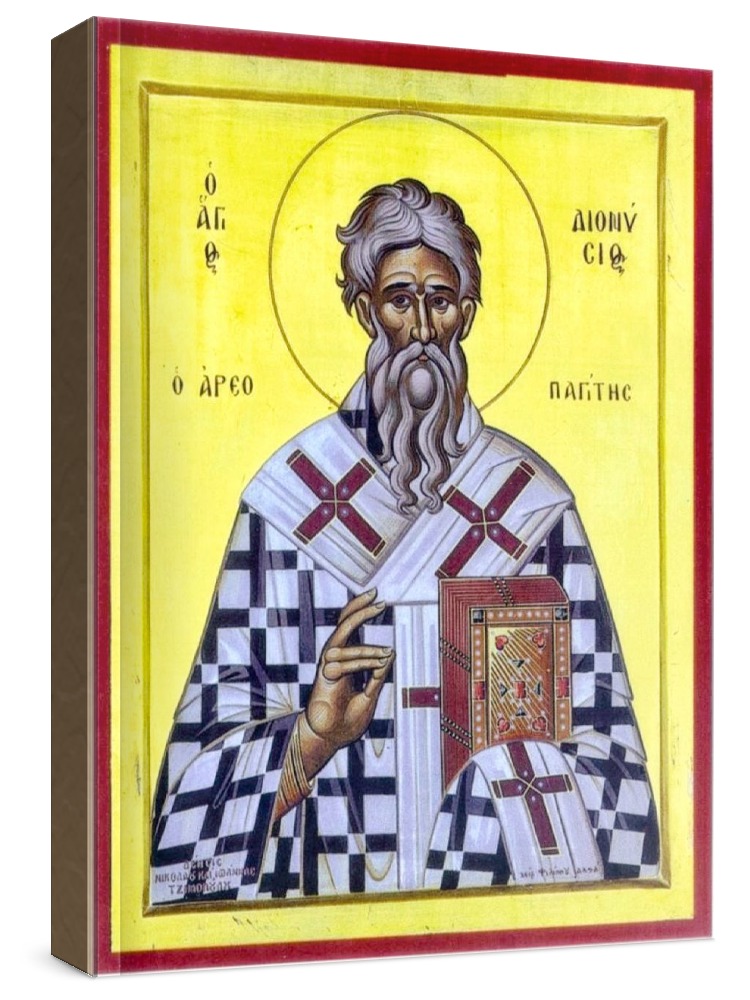 Икона дионисий ареопагит. Икона на заказ. Срок изготовления - 1-2 недели. Изображение нанесено на основу из натурального хвойного дерева методом прямой печати (не полиграфия). Деревянная основа иконы подвержена искусственному старению. Лик покрыт специальным лаком, что защищает икону от воздействий окружающей среды и обеспечивает хранение иконы в первозданном виде в течение нескольких десятилетий. Цена зависит от размера иконы (высота может незначительно отличаться от указанной величины в связи с точным соблюдением пропорций оригинала): 10x13*- 1500 руб. 30x40 - 5000 руб. 60x80 - 15000 руб. 15x18 - 2250 руб. 40x60 - 8000 руб. 80x120 - 20000 руб. 20x25 - 3000 руб. * - изготовление иконы 10х13 см возможно только при заказе от 3 шт.