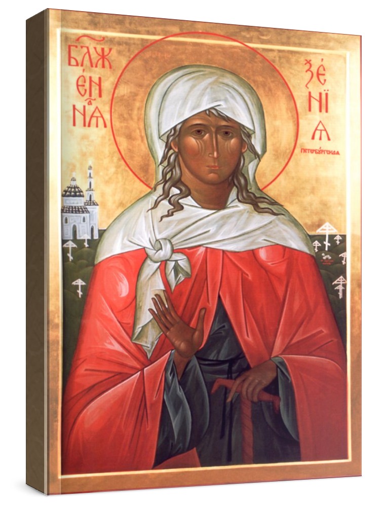 Икона ксения петербургская.     Икона на заказ. Срок изготовления - 1-2 недели.  Изображение нанесено на основу из натурального хвойного дерева методом прямой печати (не полиграфия).  Деревянная основа иконы подвержена искусственному старению.  Лик покрыт специальным лаком, что защищает икону от воздействий окружающей среды и обеспечивает хранение иконы в первозданном виде в течение нескольких десятилетий.  Цена зависит от размера иконы (высота может незначительно отличаться от указанной величины в связи с точным соблюдением пропорций оригинала):  10x13*- 1500 руб. 30x40 - 5000 руб. 60x80 - 15000 руб.   15x18 - 2250 руб. 40x60 - 8000 руб. 80x120 - 20000 руб.  20x25 - 3000 руб.   * - изготовление иконы 10х13 см возможно только при заказе от 3 шт.
