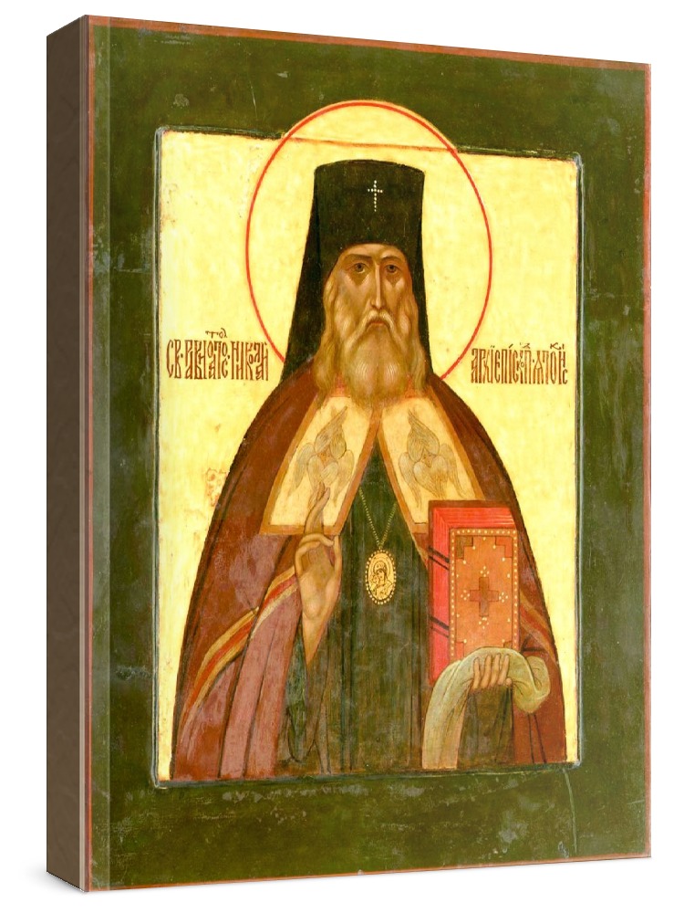 Икона николай японский (копия старинной). Икона на заказ. Срок изготовления - 1-2 недели. Изображение нанесено на основу из натурального хвойного дерева методом прямой печати (не полиграфия). Деревянная основа иконы подвержена искусственному старению. Лик покрыт специальным лаком, что защищает икону от воздействий окружающей среды и обеспечивает хранение иконы в первозданном виде в течение нескольких десятилетий. Цена зависит от размера иконы (высота может незначительно отличаться от указанной величины в связи с точным соблюдением пропорций оригинала): 10x13*- 1500 руб. 30x40 - 5000 руб. 60x80 - 15000 руб. 15x18 - 2250 руб. 40x60 - 8000 руб. 80x120 - 20000 руб. 20x25 - 3000 руб. * - изготовление иконы 10х13 см возможно только при заказе от 3 шт.