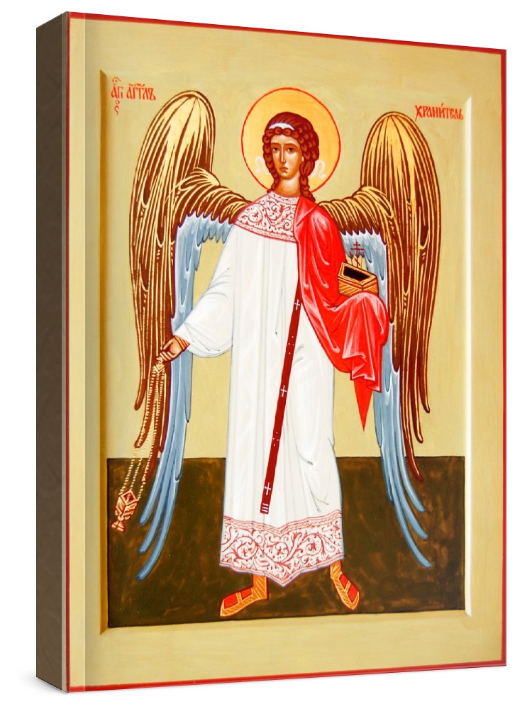 Икона ангел хранитель. Икона на заказ. Срок изготовления - 1-2 недели. Изображение нанесено на основу из натурального хвойного дерева методом прямой печати (не полиграфия). Деревянная основа иконы подвержена искусственному старению. Лик покрыт специальным лаком, что защищает икону от воздействий окружающей среды и обеспечивает хранение иконы в первозданном виде в течение нескольких десятилетий. Цена зависит от размера иконы (высота может незначительно отличаться от указанной величины в связи с точным соблюдением пропорций оригинала): 10x13*- 1500 руб. 30x40 - 5000 руб. 60x80 - 15000 руб. 15x18 - 2250 руб. 40x60 - 8000 руб. 80x120 - 20000 руб. 20x25 - 3000 руб. * - изготовление иконы 10х13 см возможно только при заказе от 3 шт.
