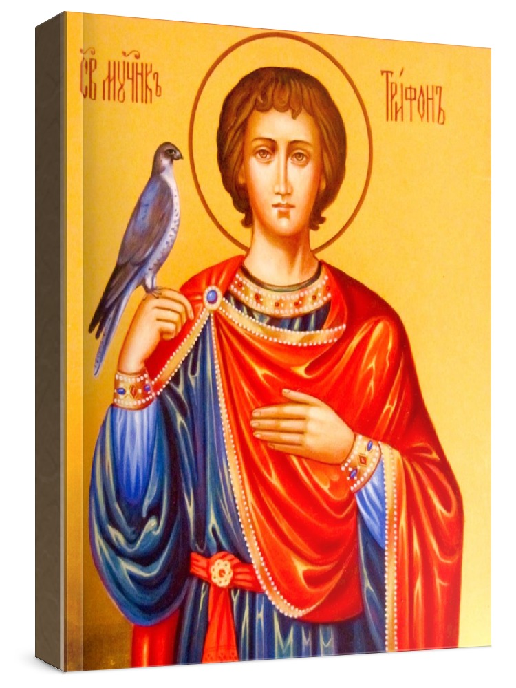 Икона трифон апамейский. Икона на заказ. Срок изготовления - 1-2 недели. Изображение нанесено на основу из натурального хвойного дерева методом прямой печати (не полиграфия). Деревянная основа иконы подвержена искусственному старению. Лик покрыт специальным лаком, что защищает икону от воздействий окружающей среды и обеспечивает хранение иконы в первозданном виде в течение нескольких десятилетий. Цена зависит от размера иконы (высота может незначительно отличаться от указанной величины в связи с точным соблюдением пропорций оригинала): 10x13*- 1500 руб. 30x40 - 5000 руб. 60x80 - 15000 руб. 15x18 - 2250 руб. 40x60 - 8000 руб. 80x120 - 20000 руб. 20x25 - 3000 руб. * - изготовление иконы 10х13 см возможно только при заказе от 3 шт.