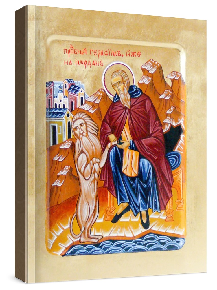 Икона герасим иорданский. Икона на заказ. Срок изготовления - 1-2 недели. Изображение нанесено на основу из натурального хвойного дерева методом прямой печати (не полиграфия). Деревянная основа иконы подвержена искусственному старению. Лик покрыт специальным лаком, что защищает икону от воздействий окружающей среды и обеспечивает хранение иконы в первозданном виде в течение нескольких десятилетий. Цена зависит от размера иконы (высота может незначительно отличаться от указанной величины в связи с точным соблюдением пропорций оригинала): 10x13*- 1500 руб. 30x40 - 5000 руб. 60x80 - 15000 руб. 15x18 - 2250 руб. 40x60 - 8000 руб. 80x120 - 20000 руб. 20x25 - 3000 руб. * - изготовление иконы 10х13 см возможно только при заказе от 3 шт.