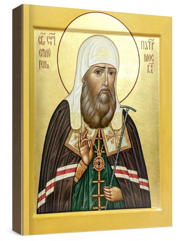 Икона ермоген московский. Икона на заказ. Срок изготовления - 1-2 недели. Изображение нанесено на основу из натурального хвойного дерева методом прямой печати (не полиграфия). Деревянная основа иконы подвержена искусственному старению. Лик покрыт специальным лаком, что защищает икону от воздействий окружающей среды и обеспечивает хранение иконы в первозданном виде в течение нескольких десятилетий. Цена зависит от размера иконы (высота может незначительно отличаться от указанной величины в связи с точным соблюдением пропорций оригинала): 10x13*- 1500 руб. 30x40 - 5000 руб. 60x80 - 15000 руб. 15x18 - 2250 руб. 40x60 - 8000 руб. 80x120 - 20000 руб. 20x25 - 3000 руб. * - изготовление иконы 10х13 см возможно только при заказе от 3 шт.