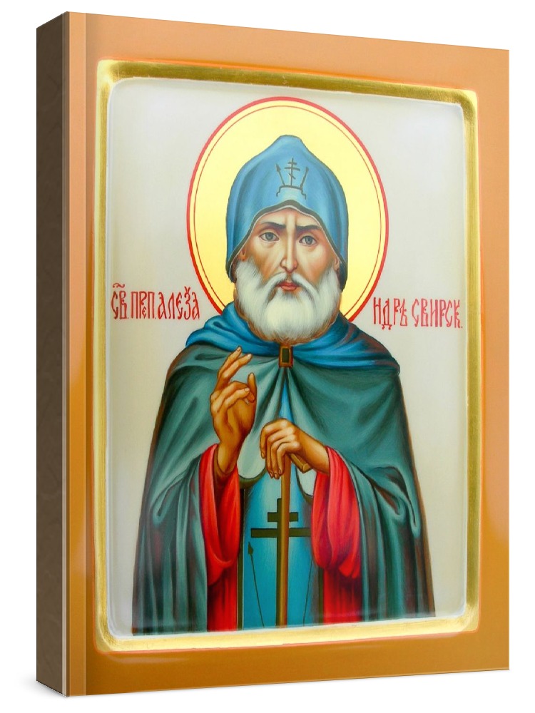 Икона александр свирский. Икона на заказ. Срок изготовления - 1-2 недели. Изображение нанесено на основу из натурального хвойного дерева методом прямой печати (не полиграфия). Деревянная основа иконы подвержена искусственному старению. Лик покрыт специальным лаком, что защищает икону от воздействий окружающей среды и обеспечивает хранение иконы в первозданном виде в течение нескольких десятилетий. Цена зависит от размера иконы (высота может незначительно отличаться от указанной величины в связи с точным соблюдением пропорций оригинала): 10x13*- 1500 руб. 30x40 - 5000 руб. 60x80 - 15000 руб. 15x18 - 2250 руб. 40x60 - 8000 руб. 80x120 - 20000 руб. 20x25 - 3000 руб. * - изготовление иконы 10х13 см возможно только при заказе от 3 шт.