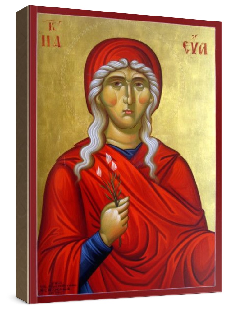 Икона ева, праматерь. Икона на заказ. Срок изготовления - 1-2 недели. Изображение нанесено на основу из натурального хвойного дерева методом прямой печати (не полиграфия). Деревянная основа иконы подвержена искусственному старению. Лик покрыт специальным лаком, что защищает икону от воздействий окружающей среды и обеспечивает хранение иконы в первозданном виде в течение нескольких десятилетий. Цена зависит от размера иконы (высота может незначительно отличаться от указанной величины в связи с точным соблюдением пропорций оригинала): 10x13*- 1500 руб. 30x40 - 5000 руб. 60x80 - 15000 руб. 15x18 - 2250 руб. 40x60 - 8000 руб. 80x120 - 20000 руб. 20x25 - 3000 руб. * - изготовление иконы 10х13 см возможно только при заказе от 3 шт.