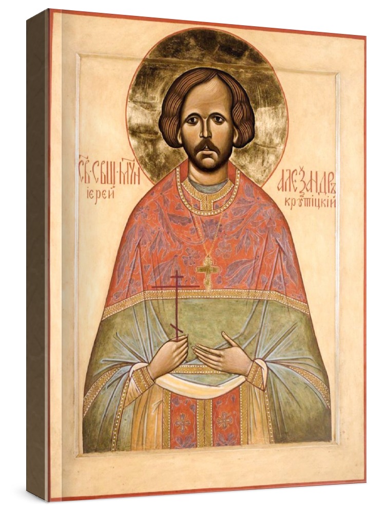 Икона александр крутицкий. Икона на заказ. Срок изготовления - 1-2 недели. Изображение нанесено на основу из натурального хвойного дерева методом прямой печати (не полиграфия). Деревянная основа иконы подвержена искусственному старению. Лик покрыт специальным лаком, что защищает икону от воздействий окружающей среды и обеспечивает хранение иконы в первозданном виде в течение нескольких десятилетий. Цена зависит от размера иконы (высота может незначительно отличаться от указанной величины в связи с точным соблюдением пропорций оригинала): 10x13*- 1500 руб. 30x40 - 5000 руб. 60x80 - 15000 руб. 15x18 - 2250 руб. 40x60 - 8000 руб. 80x120 - 20000 руб. 20x25 - 3000 руб. * - изготовление иконы 10х13 см возможно только при заказе от 3 шт.