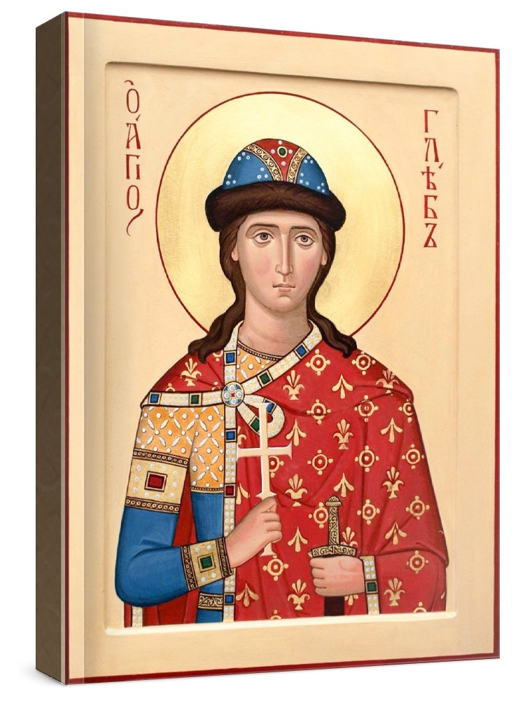 Икона глеб, князь. Икона на заказ. Срок изготовления - 1-2 недели. Изображение нанесено на основу из натурального хвойного дерева методом прямой печати (не полиграфия). Деревянная основа иконы подвержена искусственному старению. Лик покрыт специальным лаком, что защищает икону от воздействий окружающей среды и обеспечивает хранение иконы в первозданном виде в течение нескольких десятилетий. Цена зависит от размера иконы (высота может незначительно отличаться от указанной величины в связи с точным соблюдением пропорций оригинала): 10x13*- 1500 руб. 30x40 - 5000 руб. 60x80 - 15000 руб. 15x18 - 2250 руб. 40x60 - 8000 руб. 80x120 - 20000 руб. 20x25 - 3000 руб. * - изготовление иконы 10х13 см возможно только при заказе от 3 шт.