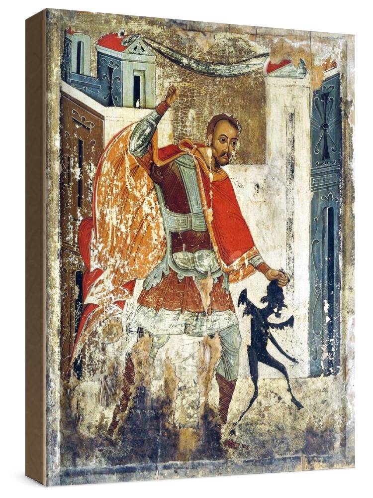 Икона никита бесогон (копия стариной иконы). Икона на заказ. Срок изготовления - 1-2 недели. Изображение нанесено на основу из натурального хвойного дерева методом прямой печати (не полиграфия). Деревянная основа иконы подвержена искусственному старению. Лик покрыт специальным лаком, что защищает икону от воздействий окружающей среды и обеспечивает хранение иконы в первозданном виде в течение нескольких десятилетий. Цена зависит от размера иконы (высота может незначительно отличаться от указанной величины в связи с точным соблюдением пропорций оригинала): 10x13*- 1500 руб. 30x40 - 5000 руб. 60x80 - 15000 руб. 15x18 - 2250 руб. 40x60 - 8000 руб. 80x120 - 20000 руб. 20x25 - 3000 руб. * - изготовление иконы 10х13 см возможно только при заказе от 3 шт.