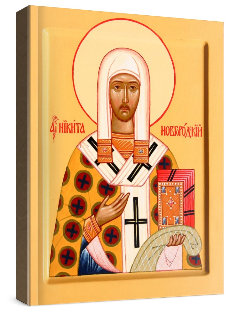 Икона никита новгородский. Икона на заказ. Срок изготовления - 1-2 недели. Изображение нанесено на основу из натурального хвойного дерева методом прямой печати (не полиграфия). Деревянная основа иконы подвержена искусственному старению. Лик покрыт специальным лаком, что защищает икону от воздействий окружающей среды и обеспечивает хранение иконы в первозданном виде в течение нескольких десятилетий. Цена зависит от размера иконы (высота может незначительно отличаться от указанной величины в связи с точным соблюдением пропорций оригинала): 10x13*- 1500 руб. 30x40 - 5000 руб. 60x80 - 15000 руб. 15x18 - 2250 руб. 40x60 - 8000 руб. 80x120 - 20000 руб. 20x25 - 3000 руб. * - изготовление иконы 10х13 см возможно только при заказе от 3 шт.