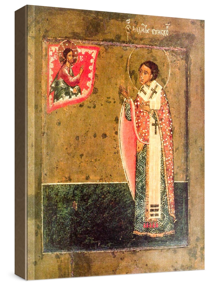 Икона никита новгородский (копия иконы 17 века). Икона на заказ. Срок изготовления - 1-2 недели. Изображение нанесено на основу из натурального хвойного дерева методом прямой печати (не полиграфия). Деревянная основа иконы подвержена искусственному старению. Лик покрыт специальным лаком, что защищает икону от воздействий окружающей среды и обеспечивает хранение иконы в первозданном виде в течение нескольких десятилетий. Цена зависит от размера иконы (высота может незначительно отличаться от указанной величины в связи с точным соблюдением пропорций оригинала): 10x13*- 1500 руб. 30x40 - 5000 руб. 60x80 - 15000 руб. 15x18 - 2250 руб. 40x60 - 8000 руб. 80x120 - 20000 руб. 20x25 - 3000 руб. * - изготовление иконы 10х13 см возможно только при заказе от 3 шт.