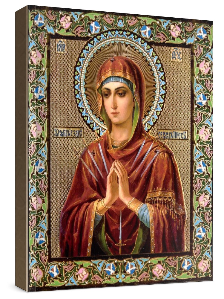 Икона умягчение злых сердец. Икона на заказ. Срок изготовления - 1-2 недели. Изображение нанесено на основу из натурального хвойного дерева методом прямой печати (не полиграфия). Деревянная основа иконы подвержена искусственному старению. Лик покрыт специальным лаком, что защищает икону от воздействий окружающей среды и обеспечивает хранение иконы в первозданном виде в течение нескольких десятилетий. Цена зависит от размера иконы (высота может незначительно отличаться от указанной величины в связи с точным соблюдением пропорций оригинала): 10x13*- 1500 руб. 30x40 - 5000 руб. 60x80 - 15000 руб. 15x18 - 2250 руб. 40x60 - 8000 руб. 80x120 - 20000 руб. 20x25 - 3000 руб. * - изготовление иконы 10х13 см возможно только при заказе от 3 шт.