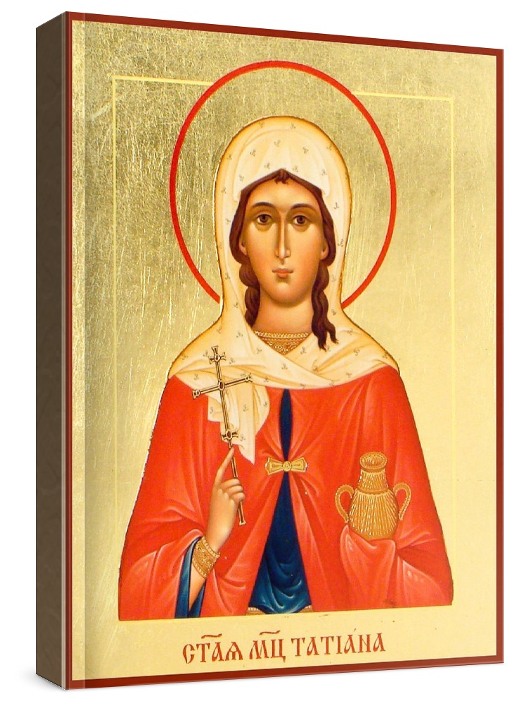 Икона татьяна римская. Икона на заказ. Срок изготовления - 1-2 недели. Изображение нанесено на основу из натурального хвойного дерева методом прямой печати (не полиграфия). Деревянная основа иконы подвержена искусственному старению. Лик покрыт специальным лаком, что защищает икону от воздействий окружающей среды и обеспечивает хранение иконы в первозданном виде в течение нескольких десятилетий. Цена зависит от размера иконы (высота может незначительно отличаться от указанной величины в связи с точным соблюдением пропорций оригинала): 10x13*- 1500 руб. 30x40 - 5000 руб. 60x80 - 15000 руб. 15x18 - 2250 руб. 40x60 - 8000 руб. 80x120 - 20000 руб. 20x25 - 3000 руб. * - изготовление иконы 10х13 см возможно только при заказе от 3 шт.