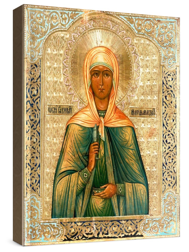 Икона мария магдалина (копия старинной иконы). Икона на заказ. Срок изготовления - 1-2 недели. Изображение нанесено на основу из натурального хвойного дерева методом прямой печати (не полиграфия). Деревянная основа иконы подвержена искусственному старению. Лик покрыт специальным лаком, что защищает икону от воздействий окружающей среды и обеспечивает хранение иконы в первозданном виде в течение нескольких десятилетий. Цена зависит от размера иконы (высота может незначительно отличаться от указанной величины в связи с точным соблюдением пропорций оригинала): 10x13*- 1500 руб. 30x40 - 5000 руб. 60x80 - 15000 руб. 15x18 - 2250 руб. 40x60 - 8000 руб. 80x120 - 20000 руб. 20x25 - 3000 руб. * - изготовление иконы 10х13 см возможно только при заказе от 3 шт.