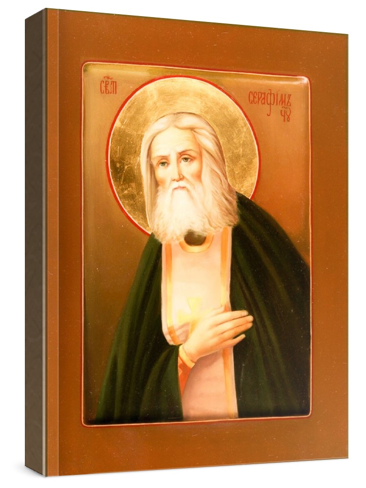 Икона серафим саровский. Икона на заказ. Срок изготовления - 1-2 недели. Изображение нанесено на основу из натурального хвойного дерева методом прямой печати (не полиграфия). Деревянная основа иконы подвержена искусственному старению. Лик покрыт специальным лаком, что защищает икону от воздействий окружающей среды и обеспечивает хранение иконы в первозданном виде в течение нескольких десятилетий. Цена зависит от размера иконы (высота может незначительно отличаться от указанной величины в связи с точным соблюдением пропорций оригинала): 10x13*- 1500 руб. 30x40 - 5000 руб. 60x80 - 15000 руб. 15x18 - 2250 руб. 40x60 - 8000 руб. 80x120 - 20000 руб. 20x25 - 3000 руб. * - изготовление иконы 10х13 см возможно только при заказе от 3 шт.
