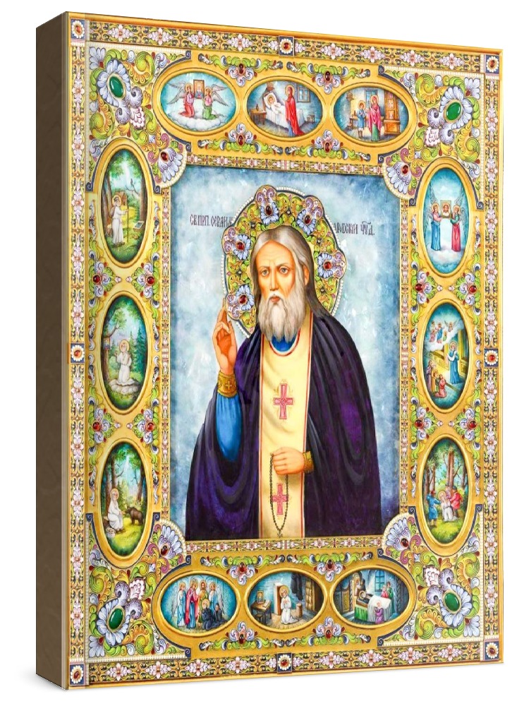 Икона серафим саровский. Икона на заказ. Срок изготовления - 1-2 недели. Изображение нанесено на основу из натурального хвойного дерева методом прямой печати (не полиграфия). Деревянная основа иконы подвержена искусственному старению. Лик покрыт специальным лаком, что защищает икону от воздействий окружающей среды и обеспечивает хранение иконы в первозданном виде в течение нескольких десятилетий. Цена зависит от размера иконы (высота может незначительно отличаться от указанной величины в связи с точным соблюдением пропорций оригинала): 10x13*- 1500 руб. 30x40 - 5000 руб. 60x80 - 15000 руб. 15x18 - 2250 руб. 40x60 - 8000 руб. 80x120 - 20000 руб. 20x25 - 3000 руб. * - изготовление иконы 10х13 см возможно только при заказе от 3 шт.