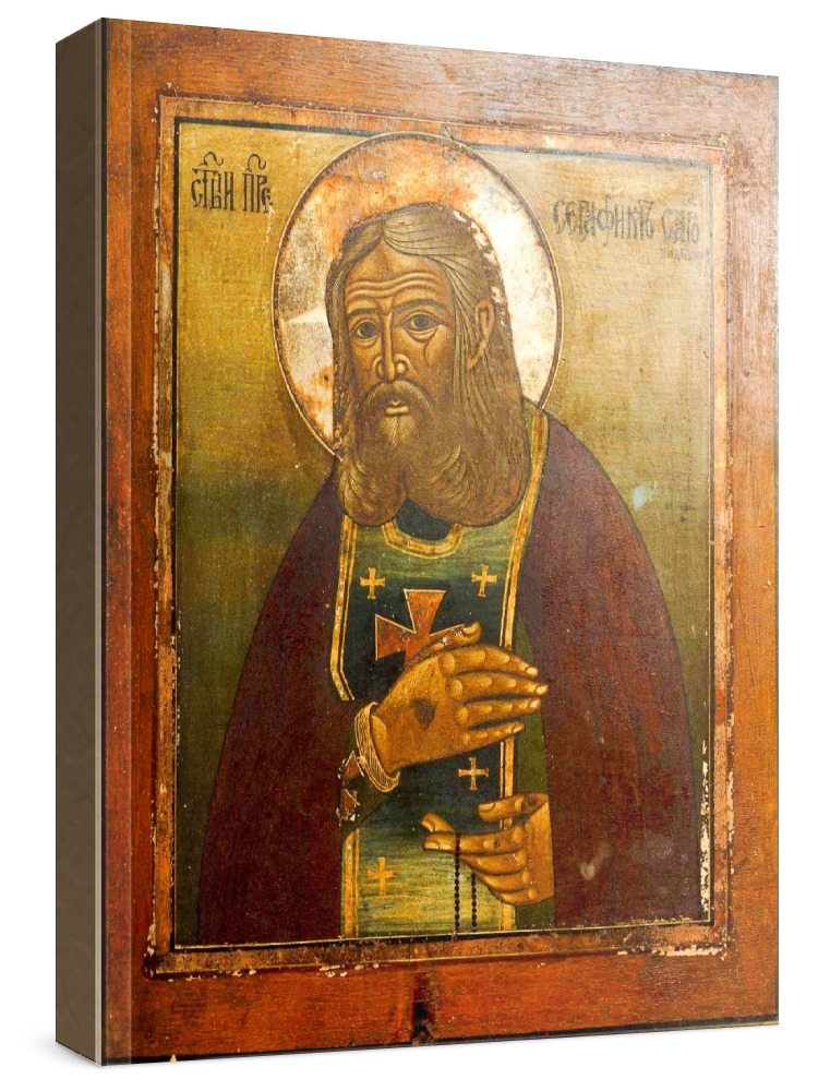 Икона серафим саровский (копия старинной иконы).     Икона на заказ. Срок изготовления - 1-2 недели.  Изображение нанесено на основу из натурального хвойного дерева методом прямой печати (не полиграфия).  Деревянная основа иконы подвержена искусственному старению.  Лик покрыт специальным лаком, что защищает икону от воздействий окружающей среды и обеспечивает хранение иконы в первозданном виде в течение нескольких десятилетий.  Цена зависит от размера иконы (высота может незначительно отличаться от указанной величины в связи с точным соблюдением пропорций оригинала):  10x13*- 1500 руб. 30x40 - 5000 руб. 60x80 - 15000 руб.   15x18 - 2250 руб. 40x60 - 8000 руб. 80x120 - 20000 руб.  20x25 - 3000 руб.   * - изготовление иконы 10х13 см возможно только при заказе от 3 шт.