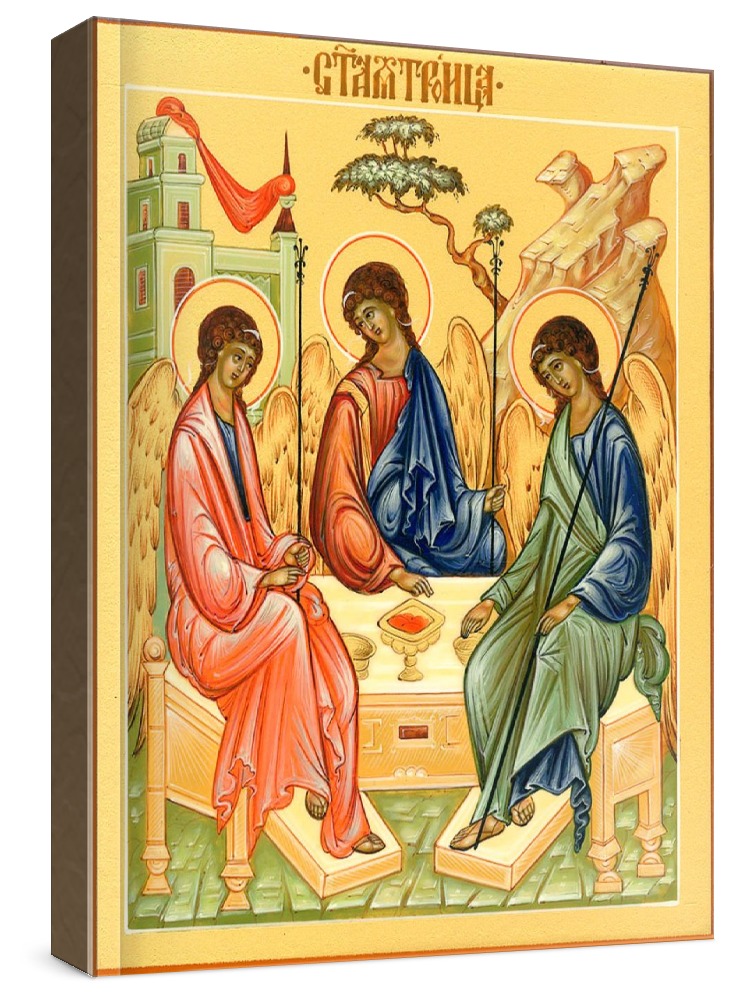 Икона троица. Икона на заказ. Срок изготовления - 1-2 недели. Изображение нанесено на основу из натурального хвойного дерева методом прямой печати (не полиграфия). Деревянная основа иконы подвержена искусственному старению. Лик покрыт специальным лаком, что защищает икону от воздействий окружающей среды и обеспечивает хранение иконы в первозданном виде в течение нескольких десятилетий. Цена зависит от размера иконы (высота может незначительно отличаться от указанной величины в связи с точным соблюдением пропорций оригинала): 10x13*- 1500 руб. 30x40 - 5000 руб. 60x80 - 15000 руб. 15x18 - 2250 руб. 40x60 - 8000 руб. 80x120 - 20000 руб. 20x25 - 3000 руб. * - изготовление иконы 10х13 см возможно только при заказе от 3 шт.