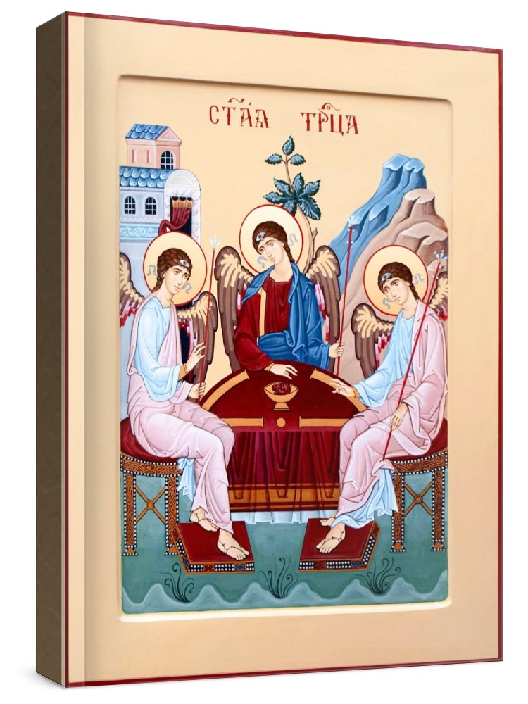 Икона троица. Икона на заказ. Срок изготовления - 1-2 недели. Изображение нанесено на основу из натурального хвойного дерева методом прямой печати (не полиграфия). Деревянная основа иконы подвержена искусственному старению. Лик покрыт специальным лаком, что защищает икону от воздействий окружающей среды и обеспечивает хранение иконы в первозданном виде в течение нескольких десятилетий. Цена зависит от размера иконы (высота может незначительно отличаться от указанной величины в связи с точным соблюдением пропорций оригинала): 10x13*- 1500 руб. 30x40 - 5000 руб. 60x80 - 15000 руб. 15x18 - 2250 руб. 40x60 - 8000 руб. 80x120 - 20000 руб. 20x25 - 3000 руб. * - изготовление иконы 10х13 см возможно только при заказе от 3 шт.