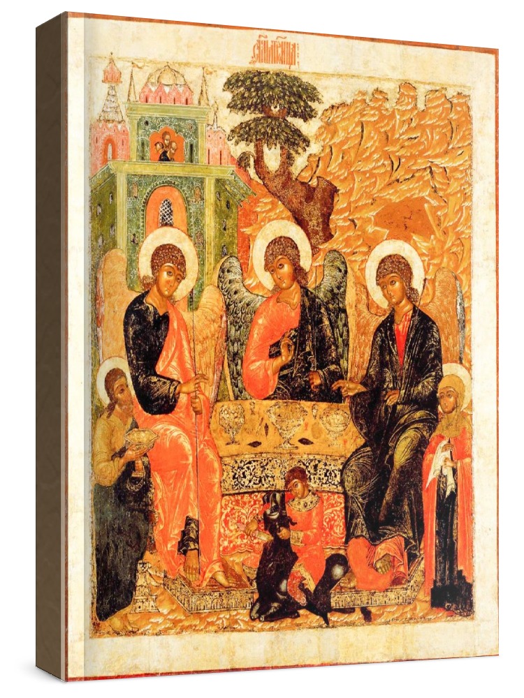 Икона троица (копия старинной иконы). Икона на заказ. Срок изготовления - 1-2 недели. Изображение нанесено на основу из натурального хвойного дерева методом прямой печати (не полиграфия). Деревянная основа иконы подвержена искусственному старению. Лик покрыт специальным лаком, что защищает икону от воздействий окружающей среды и обеспечивает хранение иконы в первозданном виде в течение нескольких десятилетий. Цена зависит от размера иконы (высота может незначительно отличаться от указанной величины в связи с точным соблюдением пропорций оригинала): 10x13*- 1500 руб. 30x40 - 5000 руб. 60x80 - 15000 руб. 15x18 - 2250 руб. 40x60 - 8000 руб. 80x120 - 20000 руб. 20x25 - 3000 руб. * - изготовление иконы 10х13 см возможно только при заказе от 3 шт.