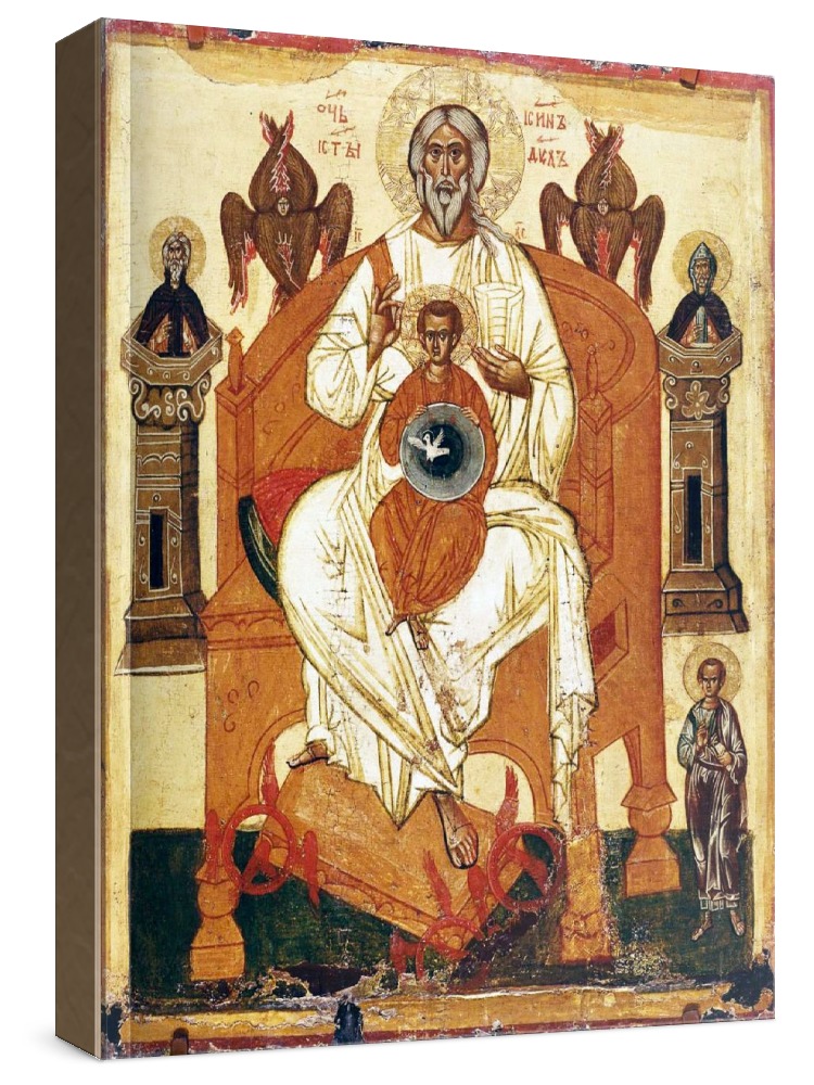Икона новозаветная троица - отечество (копия иконы 14 века). Икона на заказ. Срок изготовления - 1-2 недели. Изображение нанесено на основу из натурального хвойного дерева методом прямой печати (не полиграфия). Деревянная основа иконы подвержена искусственному старению. Лик покрыт специальным лаком, что защищает икону от воздействий окружающей среды и обеспечивает хранение иконы в первозданном виде в течение нескольких десятилетий. Цена зависит от размера иконы (высота может незначительно отличаться от указанной величины в связи с точным соблюдением пропорций оригинала): 10x13*- 1500 руб. 30x40 - 5000 руб. 60x80 - 15000 руб. 15x18 - 2250 руб. 40x60 - 8000 руб. 80x120 - 20000 руб. 20x25 - 3000 руб. * - изготовление иконы 10х13 см возможно только при заказе от 3 шт.
