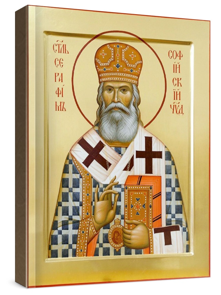Икона серафим соболев. Икона на заказ. Срок изготовления - 5-14 дней. Изображение нанесено на основу из натурального хвойного дерева методом прямой печати (не полиграфия). Деревянная основа иконы подвержена искусственному старению. Лик покрыт специальным лаком, что защищает икону от воздействий окружающей среды и обеспечивает хранение иконы в первозданном виде в течение нескольких десятилетий. Цена зависит от размера иконы (высота может незначительно отличаться от указанной величины в связи с точным соблюдением пропорций оригинала): 10x13*- 1500 руб. 30x40 - 5000 руб. 60x80 - 15000 руб. 15x18 - 2250 руб. 40x60 - 8000 руб. 80x120 - 20000 руб. 20x25 - 3000 руб. * - изготовление иконы 10х13 см возможно только при заказе от 3 шт.