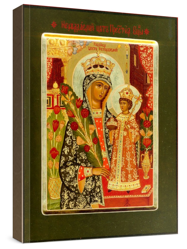 Икона неувядаемый цвет. Икона на заказ. Срок изготовления - 5-14 дней. Изображение нанесено на основу из натурального хвойного дерева методом прямой печати (не полиграфия). Деревянная основа иконы подвержена искусственному старению. Лик покрыт специальным лаком, что защищает икону от воздействий окружающей среды и обеспечивает хранение иконы в первозданном виде в течение нескольких десятилетий. Цена зависит от размера иконы (высота может незначительно отличаться от указанной величины в связи с точным соблюдением пропорций оригинала): 10x13*- 1500 руб. 30x40 - 5000 руб. 60x80 - 15000 руб. 15x18 - 2250 руб. 40x60 - 8000 руб. 80x120 - 20000 руб. 20x25 - 3000 руб. * - изготовление иконы 10х13 см возможно только при заказе от 3 шт.