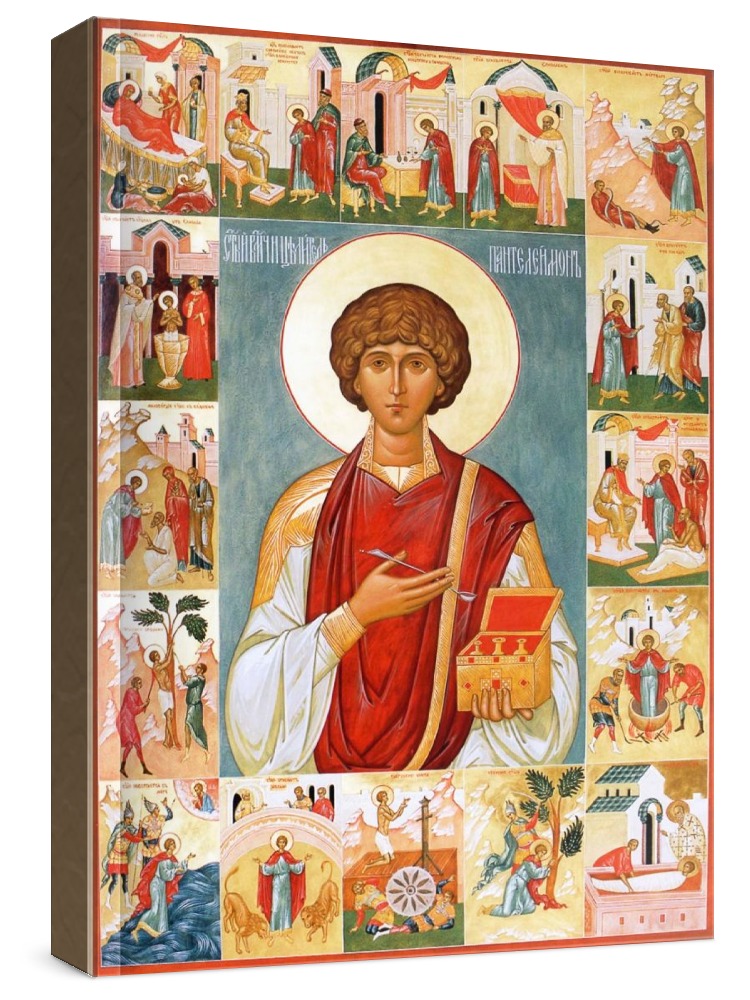 Икона пантелеймон целитель. Икона на заказ. Срок изготовления - 1-2 недели. Изображение нанесено на основу из натурального хвойного дерева методом прямой печати (не полиграфия). Деревянная основа иконы подвержена искусственному старению. Лик покрыт специальным лаком, что защищает икону от воздействий окружающей среды и обеспечивает хранение иконы в первозданном виде в течение нескольких десятилетий. Цена зависит от размера иконы (высота может незначительно отличаться от указанной величины в связи с точным соблюдением пропорций оригинала): 10x13*- 1500 руб. 30x40 - 5000 руб. 60x80 - 15000 руб. 15x18 - 2250 руб. 40x60 - 8000 руб. 80x120 - 20000 руб. 20x25 - 3000 руб. * - изготовление иконы 10х13 см возможно только при заказе от 3 шт.